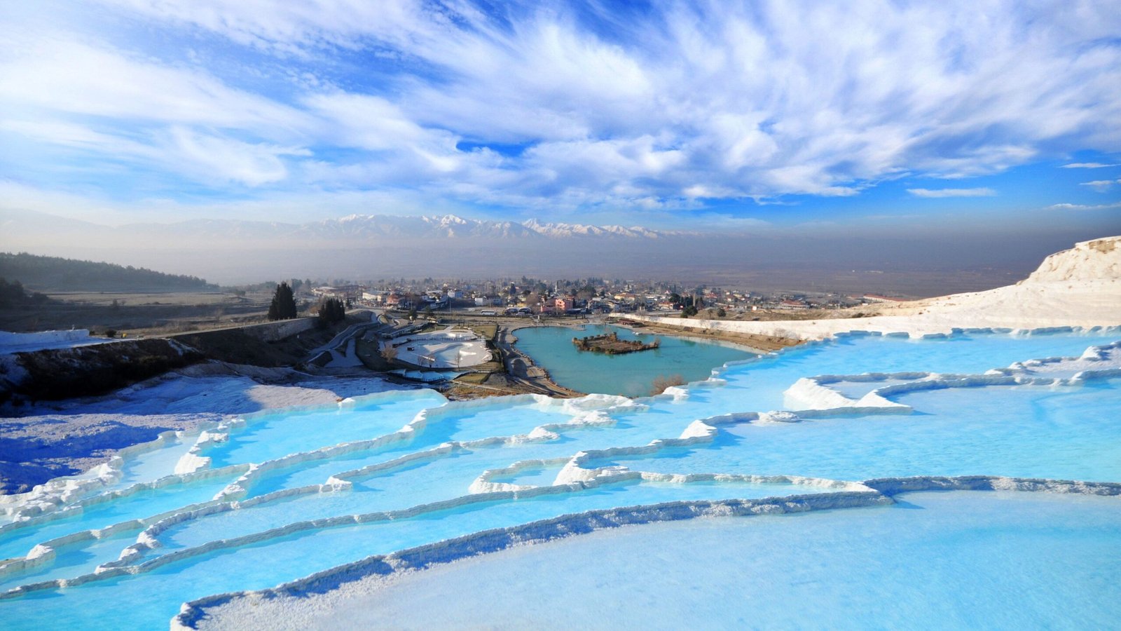 Pamukkale: Relax in the natural thermal pools of Pamukkale and admire the breathtaking views of the cotton-like terraces.